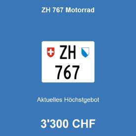Am 15.04.2020 wurde im Kanton Zürich das 3-stellige TÖFF-Nummernschild ausgegeben - in der Auktion ging es für Fr. 3300.- weg, DEM NEUEN MARKTPREIS! Verfolge den Verlauf vom «ZH 767