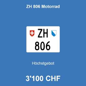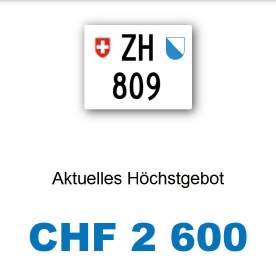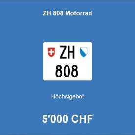 Am 24.02.2021 wurde im Kanton Zürich das 3-stellige TÖFF-Nummernschild ausgegeben - in der Auktion ging es für stolze Fr. 5000.- weg: Verfolge den Verlauf vom «ZH 808