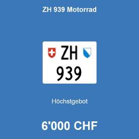 Am 13.05.2020 wurde im Kanton Zürich das 3-stellige TÖFF-Nummernschild ausgegeben - in der Auktion ging es für einen Höchstpreis von Fr. 6000.- weg! Verfolge den Verlauf vom «ZH 939