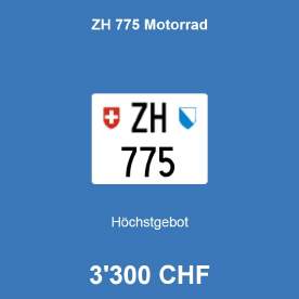Am 27.05.2020 wurde im Kanton Zürich das 3-stellige TÖFF-Nummernschild ausgegeben - in der Auktion ging es für Fr. 3300.- weg, das entspricht dem neuen Marktpreis 3Tplus! Verfolge den Verlauf vom «ZH 775