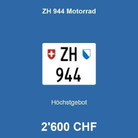 Am 10.06.2020 wurde im Kanton Zürich das 3-stellige TÖFF-Nummernschild ausgegeben - in der Auktion ging es für Fr. 2600.- weg, zu einem Sommer-Schnäppchenpreis! Verfolge den Verlauf vom «ZH 944