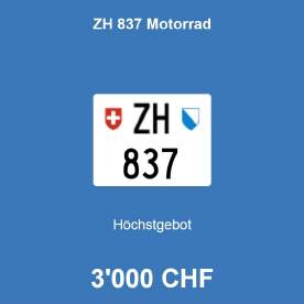 Am 05.08.2020 wird im Kanton Zürich das 3-stellige TÖFF-Nummernschild ausgegeben - in der Auktion ging es für Fr. 3000.- weg, dem höchsten Betrag in diesem Jahr für ein Töff-Schild! Verfolge den Verlauf vom «ZH 837