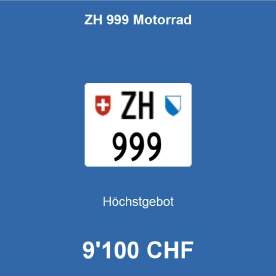 Am 30.09.2020 wurde im Kanton Zürich das 3-stellige TÖFF-Nummernschild ausgegeben - in der Auktion ging es für Fr. 9100.- weg, einem der höchsten Beträge in diesem Jahr für ein Töff-Schild! Verfolge den Verlauf vom «ZH 999