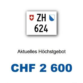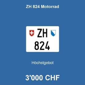 Am 28.10.2020 wurde im Kanton Zürich das 3-stellige TÖFF-Nummernschild ausgegeben - in der Auktion ging es für günstige Fr. 3000.- weg: Verfolge den Verlauf vom «ZH 824