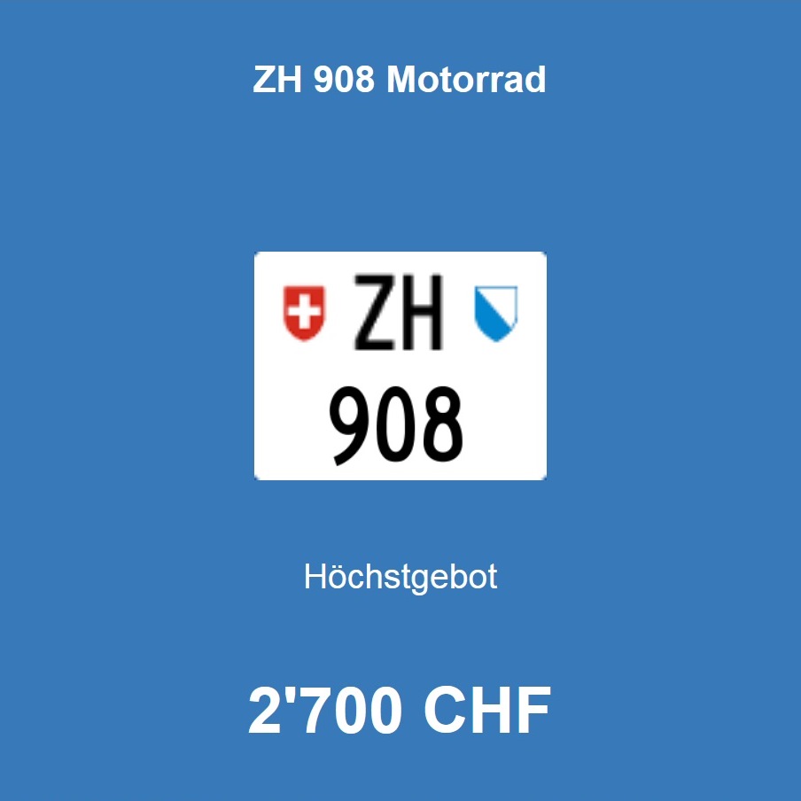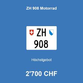 Am 23.12, bereits 1 Woche nach der letzten 3-stelligen Töff-Nummer, geht schon wieder eine attraktive Nummer ins Rennen: ZH 908 erreichte am 12.6.2019 den Betrag von Fr. 2700.-