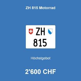 Am 30.12, bereits 1 Woche nach der letzten 3-stelligen Töff-Nummer, geht schon wieder eine attraktive Nummer ins Rennen: ZH 815 erreichte am 12.6.2019 den Betrag von Fr. 2600.-