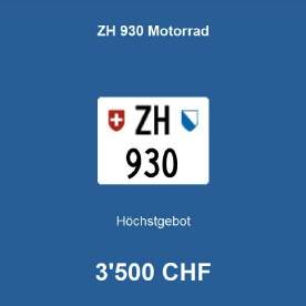 Am 20.01.2021 wurde im Kanton Zürich das 3-stellige TÖFF-Nummernschild ausgegeben - in der Auktion ging es für Fr. 3500.- weg: Zwei Bieter machten es sich streitig! Verfolge den Verlauf vom «ZH 930