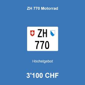 Am 21.8.2019 wurde im Kanton Zürich das zwölfte 3-stellige TÖFF-Nummernschild ausgegeben - in der Auktion dem Höchstbietenden: Verfolge den Verlauf «ZH 771