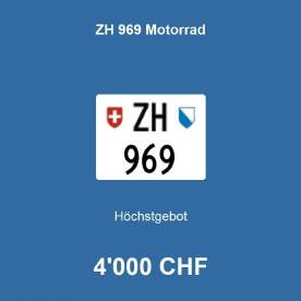 Am 03.02.2021 wurde im Kanton Zürich das 3-stellige TÖFF-Nummernschild ausgegeben - in der Auktion ging zum erstaunlich tiefen Preis von Fr. 4000.- weg: Verfolge den Verlauf vom «ZH 969