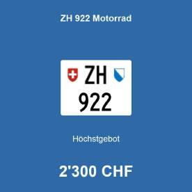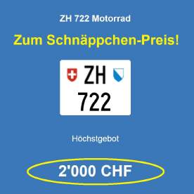 Am 17.02.2021 wurde im Kanton Zürich das 3-stellige TÖFF-Nummernschild ausgegeben - nein, es geht NOCH TIEFER: Ein 3-stelliges Töff-Schild für Fr. 2000.-: Verfolge den Verlauf vom «ZH 722