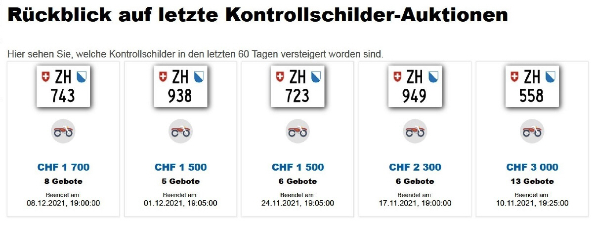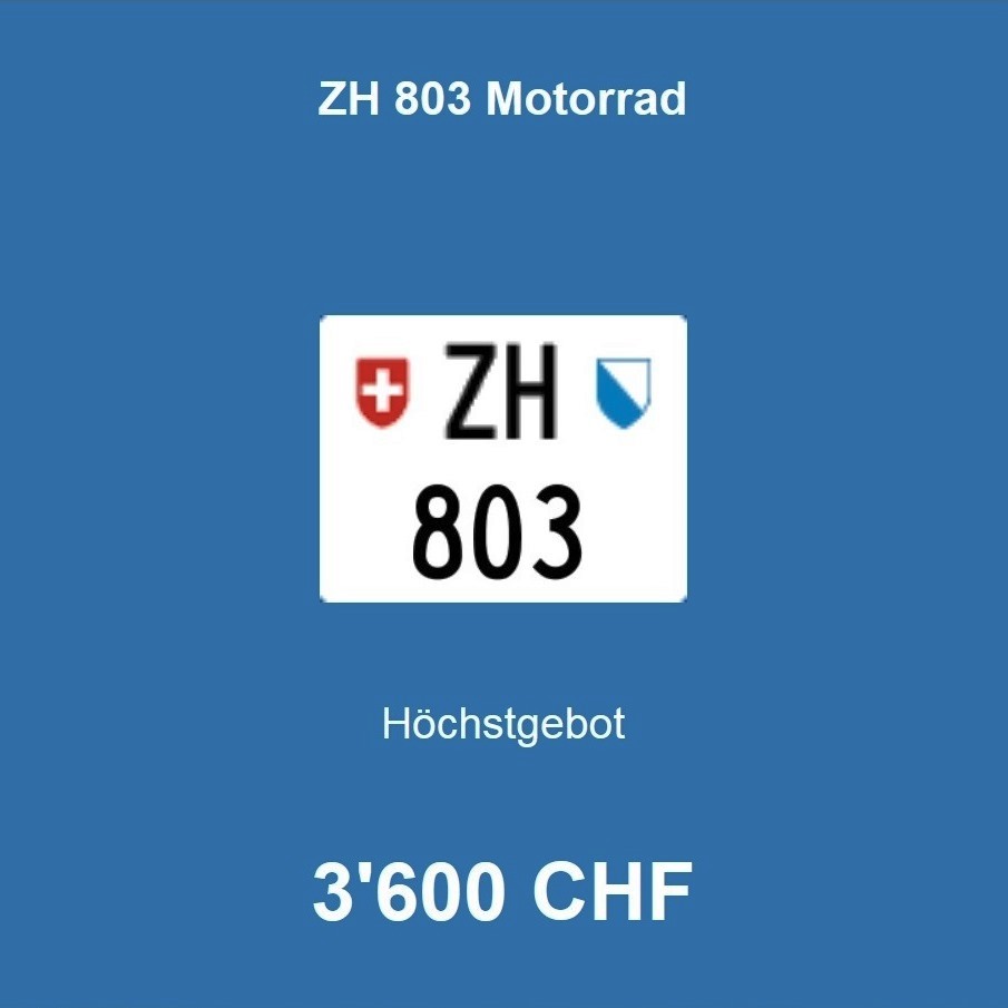 Am 07.04.2021 wurde im Kanton Zürich das 3-stellige TÖFF-Nummernschild ausgegeben - in der Auktion ging es für respektable Fr. 3600.- weg, kaum mehr ein Schnäppchenpreis! Verfolge den Verlauf vom «ZH 803
