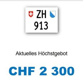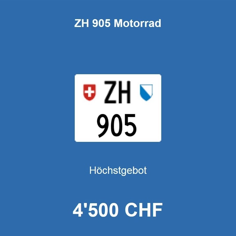 Am 21.04.2021 wurde im Kanton Zürich das 3-stellige TÖFF-Nummernschild ausgegeben - in der Auktion ging es für gute Fr. 4500.- weg, ein normaler Preis für die Saison! Verfolge den Verlauf vom «ZH 905