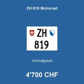 Am 05.05.2021 wurde im Kanton Zürich das 3-stellige TÖFF-Nummernschild ausgegeben - in der Auktion ging es für gute Fr. 4700.- weg, ein normaler Preis für die Saison! Verfolge den Verlauf vom «ZH 819