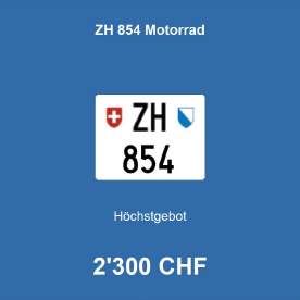 Am 12.05.2021 wurde im Kanton Zürich das 3-stellige TÖFF-Nummernschild ausgegeben - in der Auktion ging es für lausige Fr. 2300.- weg, unglaublich für die neue Saison! Verfolge den Verlauf vom «ZH 854
