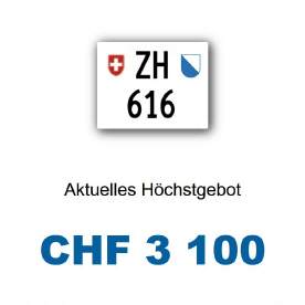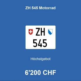 Am 26.04.2023 fand die erste Auktion des laufenden Jahres statt mit drei Töff-Nummerschildern, darunter ein dreistelliges: Dieses Schild ging für einen guten Preis von Fr. 3100.- weg. Verfolge den Verlauf vom «ZH 616