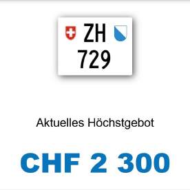 Am 1.05.2024 wurde im Kanton Zürich das nächste 3-stellige TÖFF-Nummernschild ausgegeben - in der Auktion ging es für günstige Fr. 2100.- weg! Verfolge den Verlauf vom «ZH 728