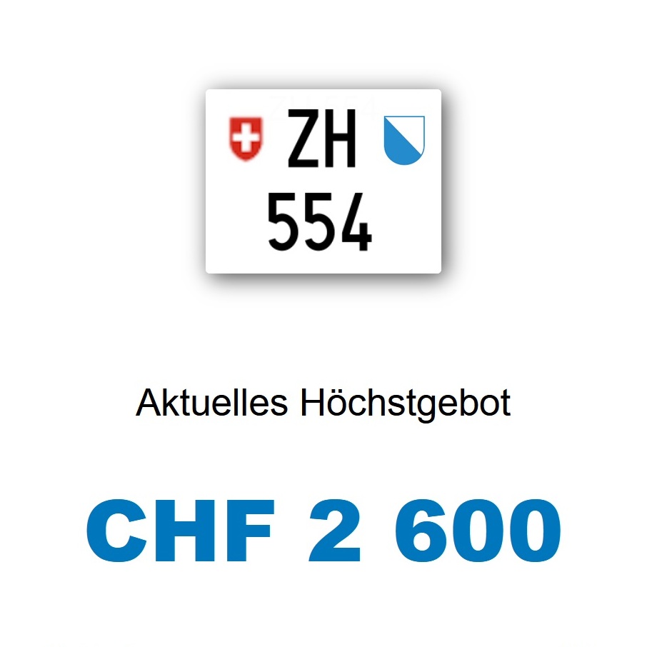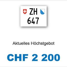 Am 15.05.2024 wurde im Kanton Zürich das nächste 3-stellige TÖFF-Nummernschild ausgegeben - in der Auktion ging es für günstige Fr. 2200.- weg! Verfolge den Verlauf vom «ZH 654
