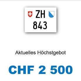 Am 26.03.2025 wurde im Kanton Zürich das nächste 3-stellige TÖFF-Nummernschild ausgegeben - in der Auktion ging es zu einem relativ tiefen Preis von Fr. 1800.- weg! Verfolge den Verlauf vom «ZH 843