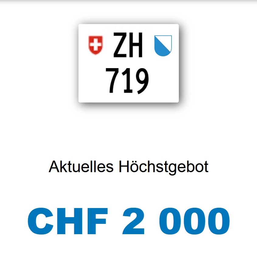 Am 3.4.2019 wurde im Kanton Zürich das zweite 3-stellige TÖFF-Nummernschild ausgegeben - in der Auktion dem Höchstbietenden: Verfolge den Verlauf «ZH 777» bei diesem Schild, welches immerhin einen Erlös von Fr. 6'300.- erzielte -, heute erzielen 3-stellige Autonummern jeweils um die 20'000 Franken - mehr dazu hier