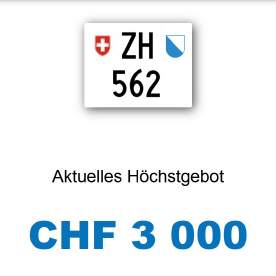 Am 12.6.2019 wurde im Kanton Zürich das siebte 3-stellige TÖFF-Nummernschild ausgegeben - in der Auktion dem Höchstbietenden: Verfolge den Verlauf «ZH 707