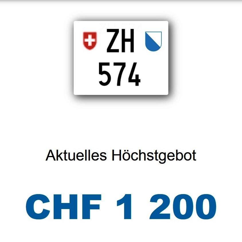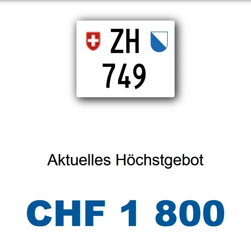 Am 15.5.2019 wurde im Kanton Zürich das fünfte 3-stellige TÖFF-Nummernschild ausgegeben - in der Auktion dem Höchstbietenden: Verfolge den Verlauf «ZH 800