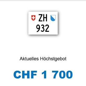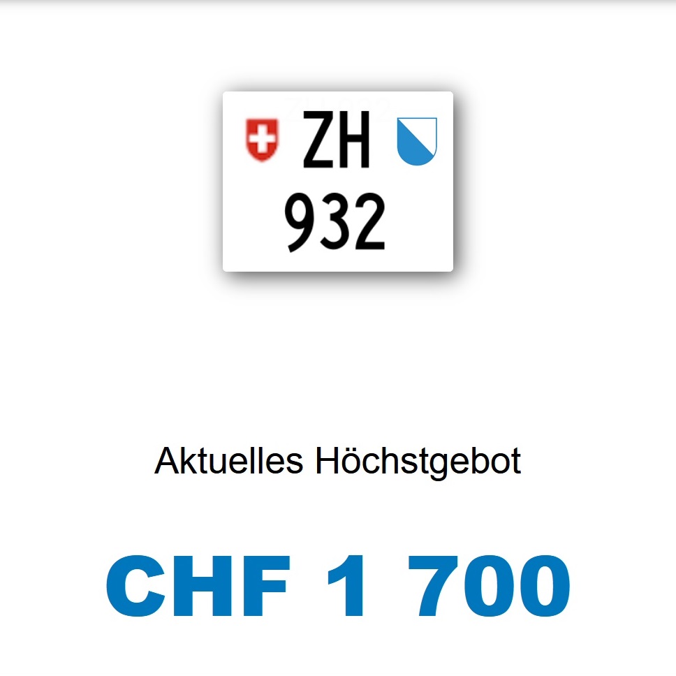 Am 2.10.2019 wurde im Kanton Zürich das zwölfte 3-stellige TÖFF-Nummernschild ausgegeben - in der Auktion dem Höchstbietenden: Verfolge den Verlauf «ZH 931