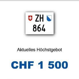 Am 4.9.2019 wurde im Kanton Zürich das zwölfte 3-stellige TÖFF-Nummernschild ausgegeben - in der Auktion dem Höchstbietenden: Verfolge den Verlauf «ZH 868