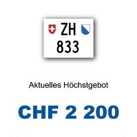Am 30.10.2019 wurde im Kanton Zürich das 3-stellige TÖFF-Nummernschild ausgegeben - in der Auktion ging es für nur Fr. 2000.- weg: Ein Schnäppchenpreis! Verfolge den Verlauf vom «ZH 832