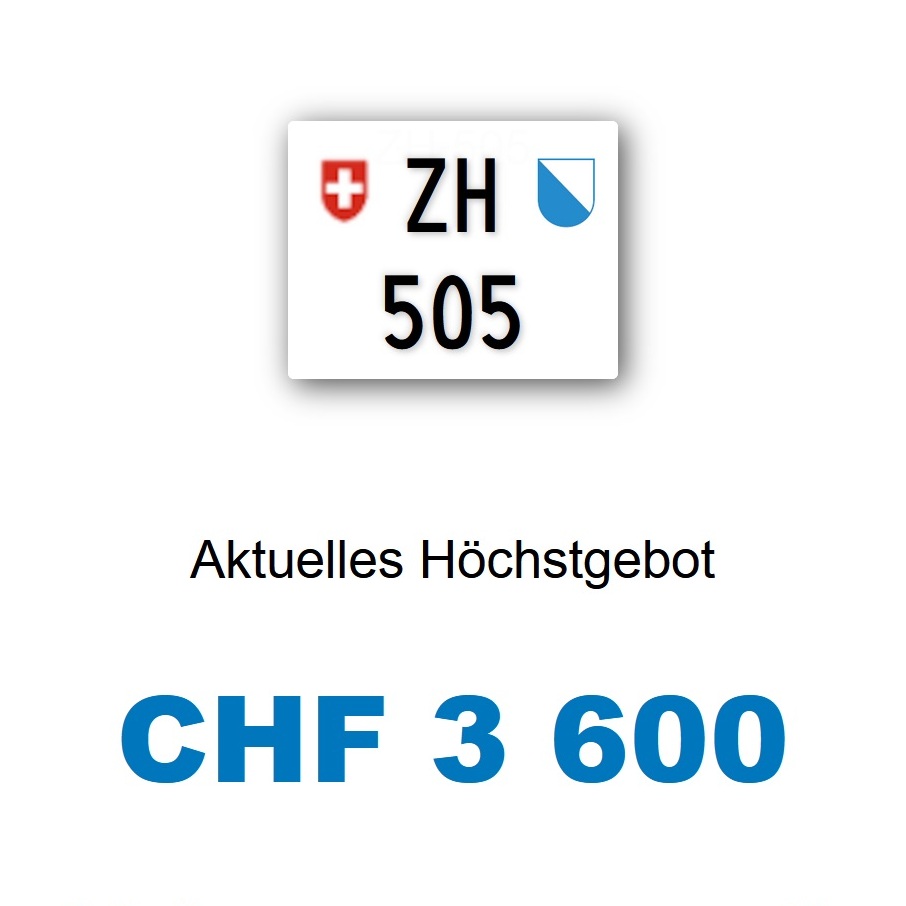 Am 27.11.2024 wurde im Kanton Zürich das nächste 3-stellige TÖFF-Nummernschild ausgegeben - in der Auktion ging es zum unglaublich guten Preis von Fr. 3600.- weg! Verfolge den Verlauf vom «ZH 505