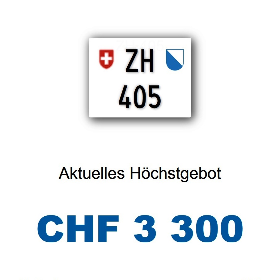 Am 18.12.2024 wurde im Kanton Zürich das nächste 3-stellige TÖFF-Nummernschild ausgegeben - in der Auktion ging es zu einem guten Preis von Fr. 3300.- weg! Verfolge den Verlauf vom «ZH 405