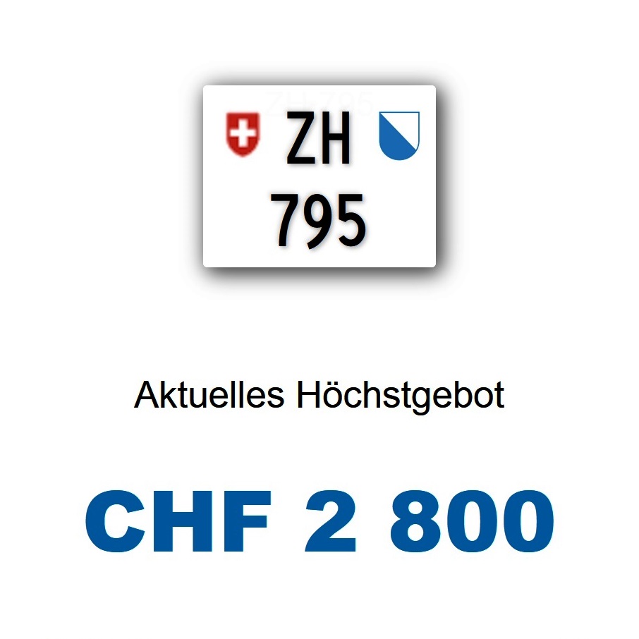 Am 25.12.2024 wurde im Kanton Zürich das nächste 3-stellige TÖFF-Nummernschild ausgegeben - in der Auktion ging es zu einem ziemlich guten Preis von Fr. 2800.- weg! Verfolge den Verlauf vom «ZH 795