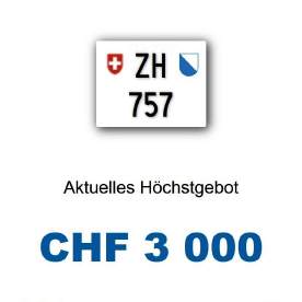 Am 09.04.2025 wurde im Kanton Zürich das nächste 3-stellige TÖFF-Nummernschild ausgegeben - in der Auktion ging es zum saisonal guten Preis von Fr. 3000.- weg! Verfolge den Verlauf vom «ZH 757