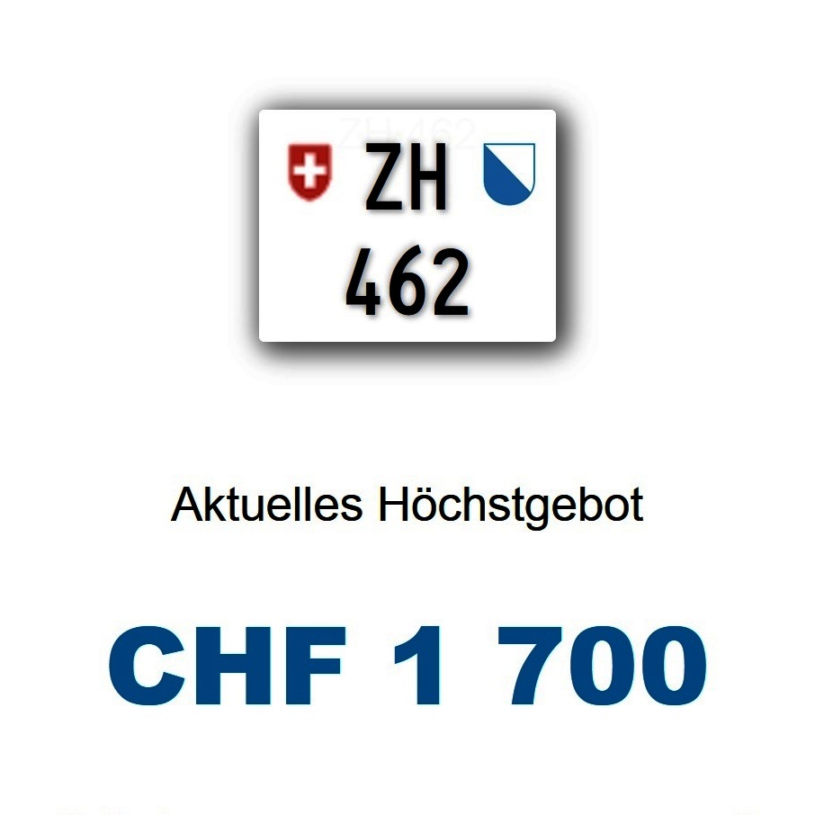Am 16.04.2025 wurde im Kanton Zürich das nächste 3-stellige TÖFF-Nummernschild ausgegeben - in der Auktion ging es zu einem relativ tiefen Preis von Fr. 1700.- weg! Verfolge den Verlauf vom «ZH 462