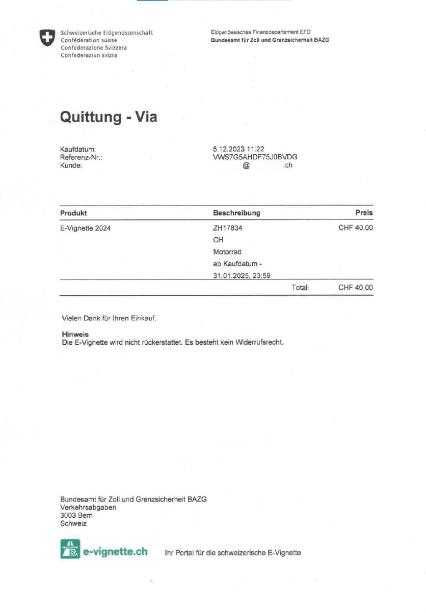 Nach vollzogenem Kauf der Vignette kann man sich eine Quittung
