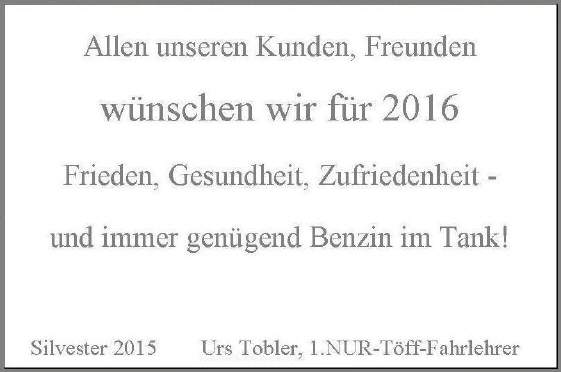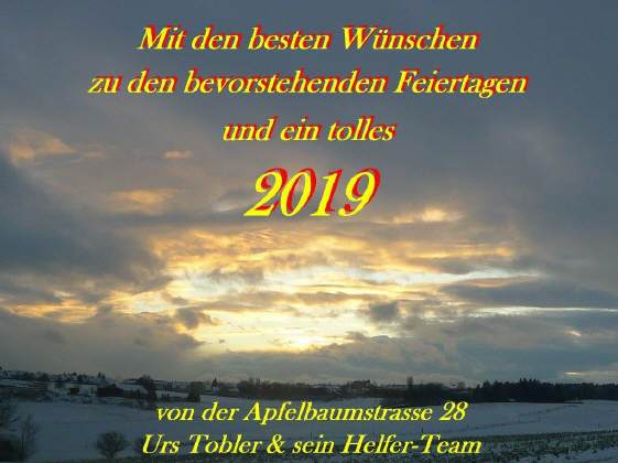 Wir wünschen allen unseren aktuellen, ehemaligen und zukünftigen Kunden frohe Festtage! Urs Tobler & sein Team