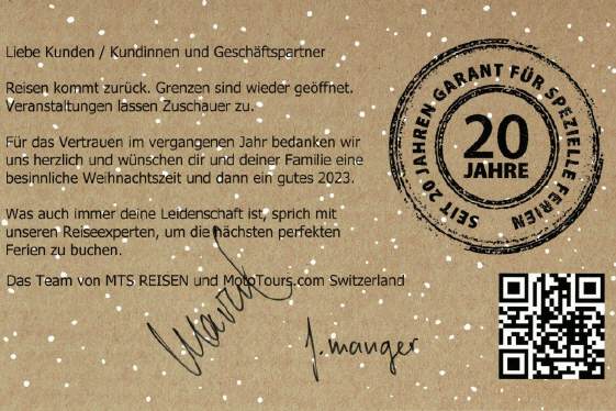 Ich wünsche allen aktuellen und ehemaligen Kund(inn)en, Berufskolleg(inn)en, Fans und Freunden sowie ihren Familien zu den bevorstehenden Feiertagen viel Ruhe und Entspannung, für einmal mit besserem Wetter auf der Alpen-Nordseite!