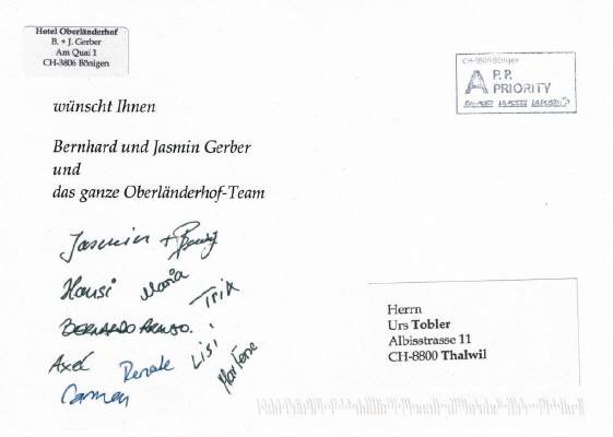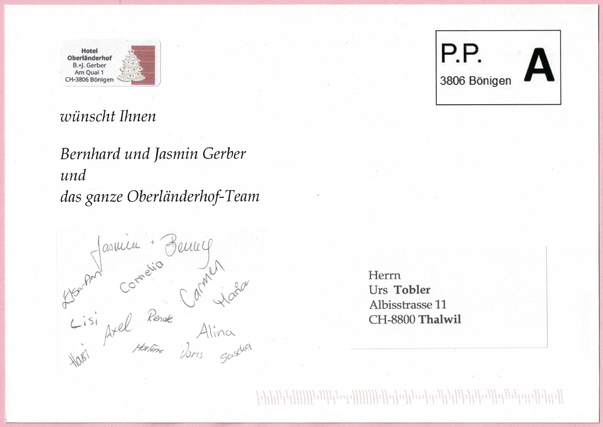 Alle Jahre wieder ... treffen die guten Wünsche aus Bönigen ein, welche ich gerne weitergebe! Hier als PDF [1'621 KB]
