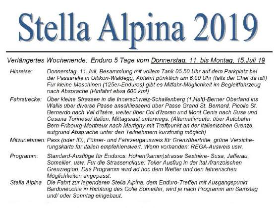5tägige Töff-Tour ins Piemont mit Begleitfahrzeug, möglich mit (Hard-) Enduros und mit Strassenmotorrädern (auch Kombination), mehr dazu findest hier