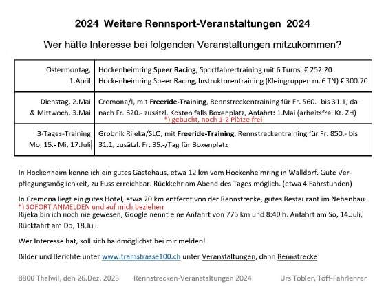2024 Bereits def. gebucht Rennstreckentrainings |