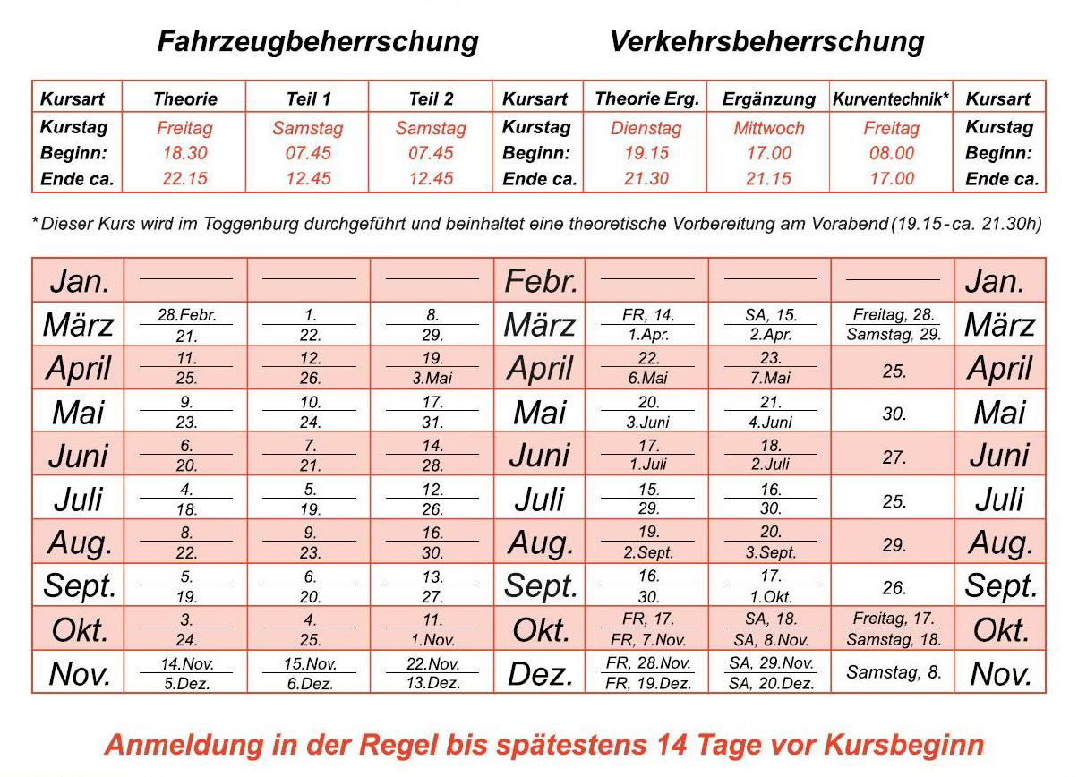 Die KURSDATEN 2014 (Grund- und Ergänzungskurse, Kurventechnik1 in der Übersicht) als PDF [1'725 KB]