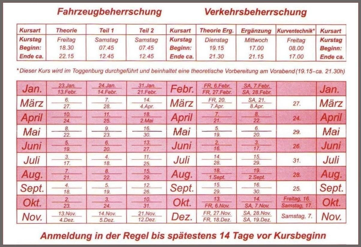 Mögliche Daten für KT2-Kurse in Zug als JPG