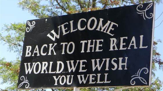 Als wir das Areal verliessen, stand diese «sinnige Tafel» am Ausgang: Es traf so bezeichnend zu für unseren Urlaub, als wir nach 2 Monaten zurückkamen.