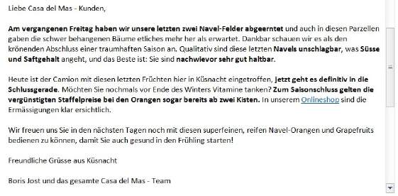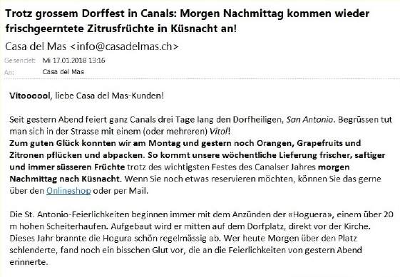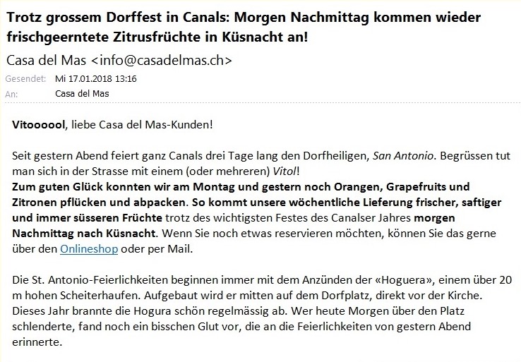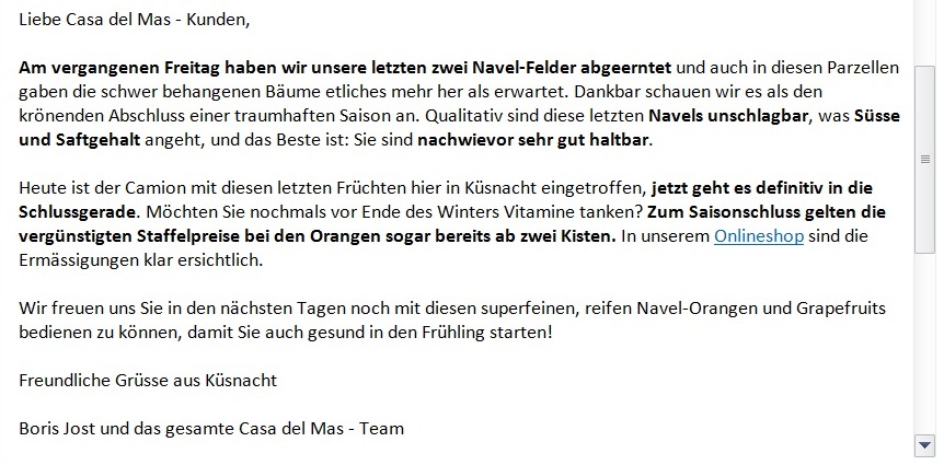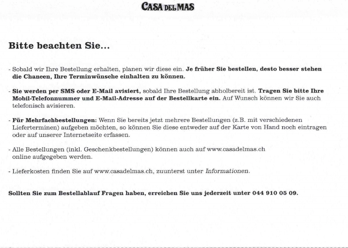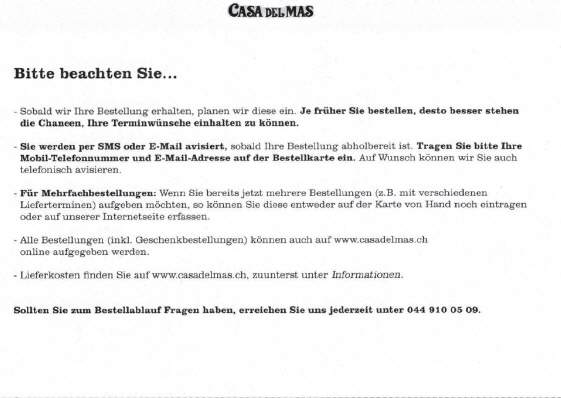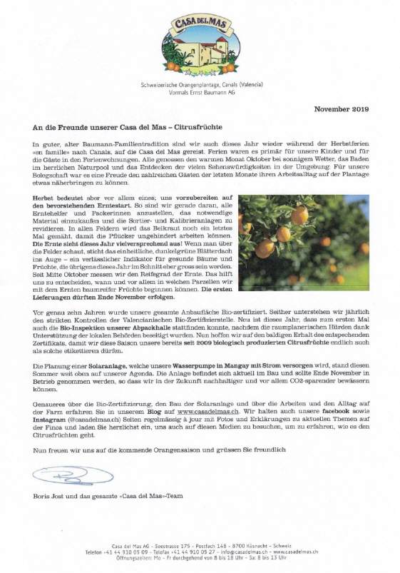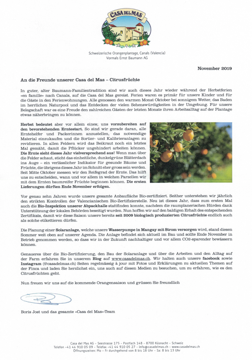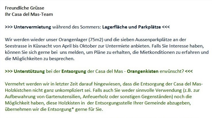 «Casa del Mas»-Post an alle Kunden im Nov. 2022 |