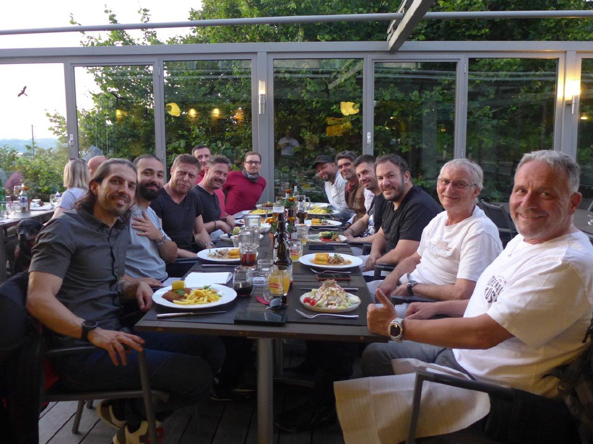 Gina berichtete im Chat der Gruppe über die erste Ausfahrt: «Was hatten wir gestern doch für schönes Wetter zum Fahren! Auf der ganzen Strecke blieb es trocken und es war nicht zu warm. Das abschliessende Essen im ("Rest.") Wyberg ("in Teufen") war fantastisch. Danke für die rundum gelungene Ausfahrt!»