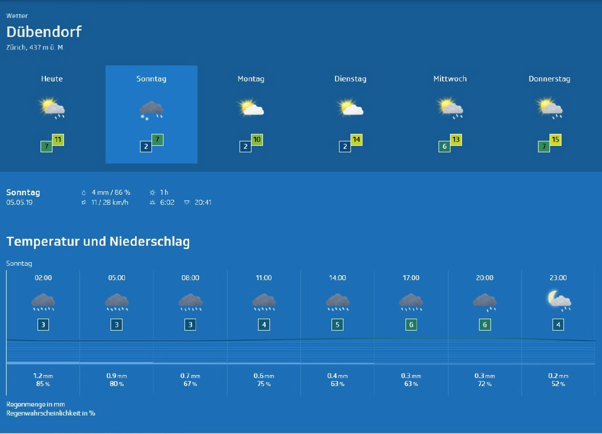 Prognose Radio DRS Meteo Schweiz für Dübendorf |