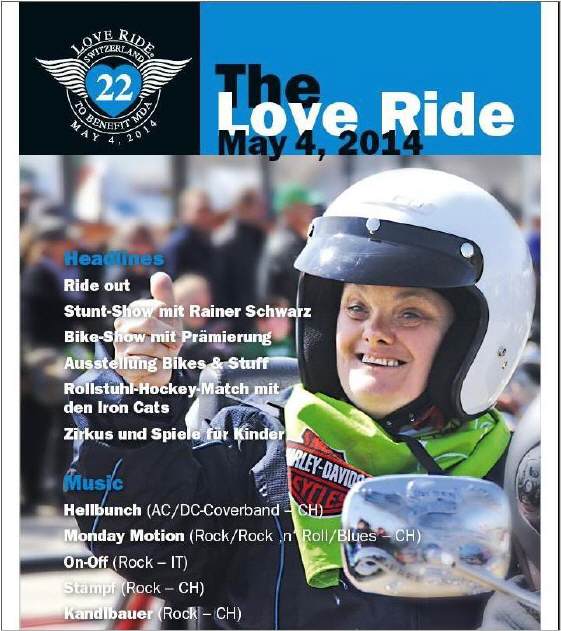 Schweiz entstand, war einer der Gründe, damit positiv in der Öffentlichkeit für die Sache der Töff-Fahrer Werbung zu machen. Dies ist dem LOVERIDE in beeindruckender Weise gelungen: Sie haben jedes Jahr einen grossen Auftritt im Schweizer Fernsehen und dies trägt wesentlich zum besseren Image aller Töff-Fahrer bei.