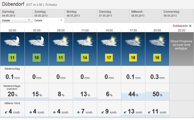 Prognose Radio DRS Meteo Schweiz für Dübendorf |