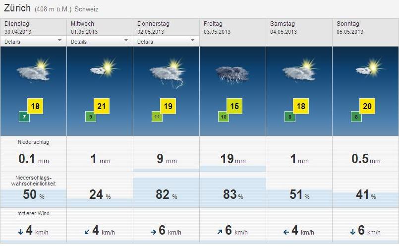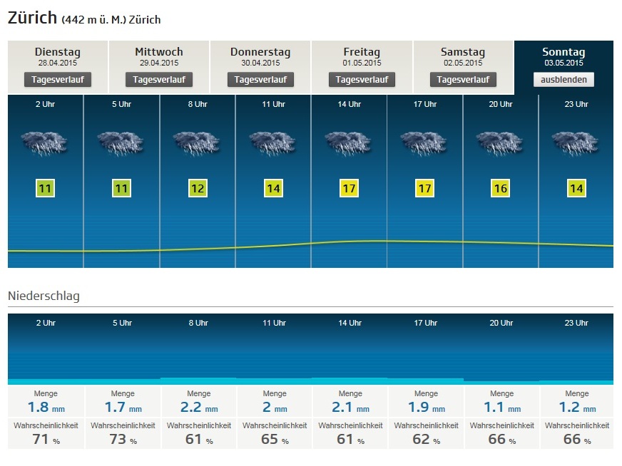 5-Tages-Prognose Radio SRF Meteo Schweiz |