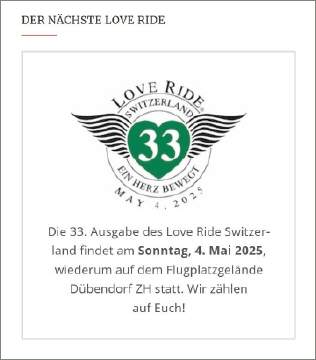Mehr über den Pfeil oben rechts «Weiter» zu «Welche Ehre für den Verein Love Ride Switzerland» |