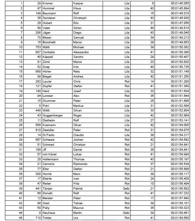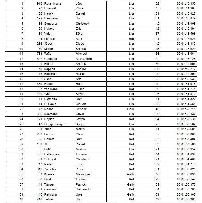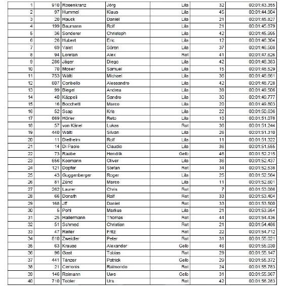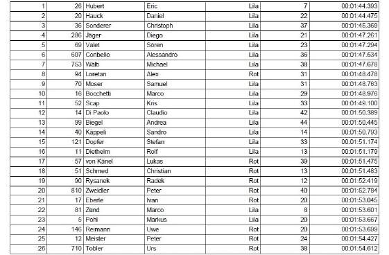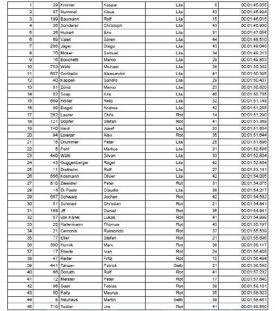 Tagesresultat bei insgesamt 92 TeilnehmerInnen